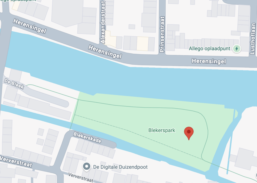Het wedstrijdterrein in het Blekerspark is bereikbaar vanaf de Langegracht of Maresingel.